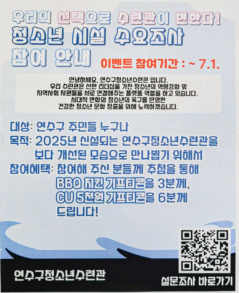 제가 방문했을 때는 청소년 시설 수요 조사 이벤트가 진행 중이었는데요.