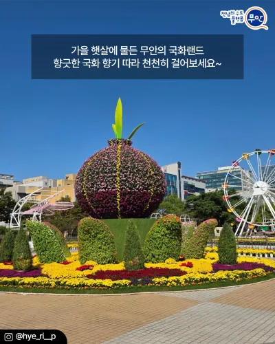 #무안군 #국화전시 #국화랜드 #가을꽃축제 #무안가볼만한곳 #남악중앙공원 #불무공원 #물맞이골산림욕장 #전남가볼만한곳 #가족여행가볼만한곳 #꽃전시