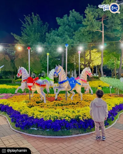 해가 지고 어둠이 내려앉으면, 국화동산은 또 한 번의 변신을 합니다.