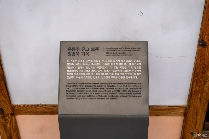 윤동주 유고 보존 정병욱 가옥 앞에는