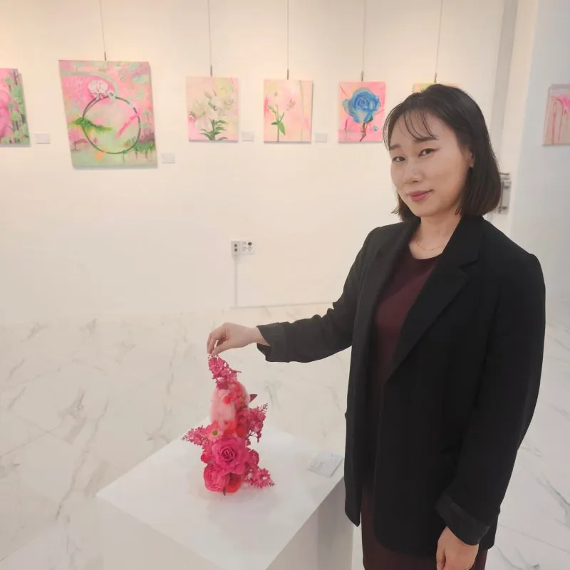오요나 작가님 : 네, 많아요. 예를 들어 꽃바구니를 소재로 한 설치 미술이 있는데요, 그건 제가 플로리스트로 일했던 경험에서 나온 작품이에요.