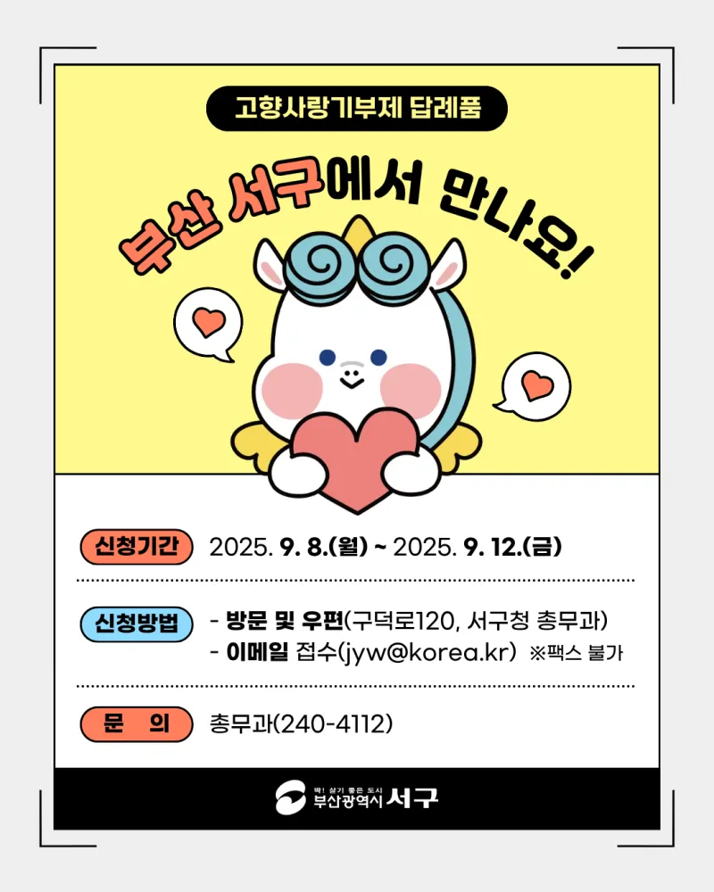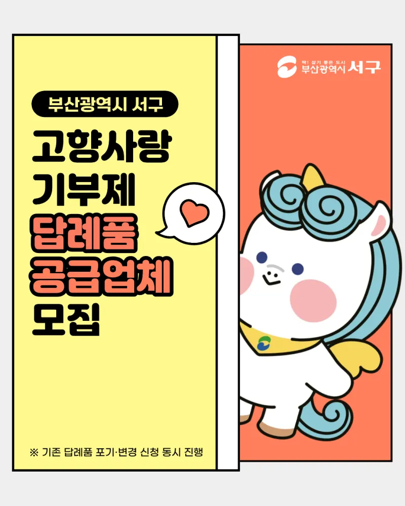 💌 부산광역시 서구 고향사랑기부제 답례품 및 공급업체 모집