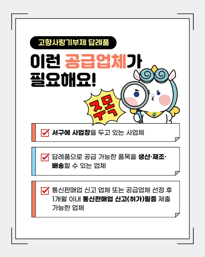 💕 고향사랑기부제 답례품 및 공급업체 모집 💌