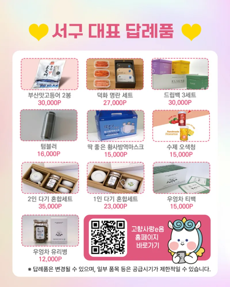 💌 현재 고향사랑기부제 서구 대표 답례품