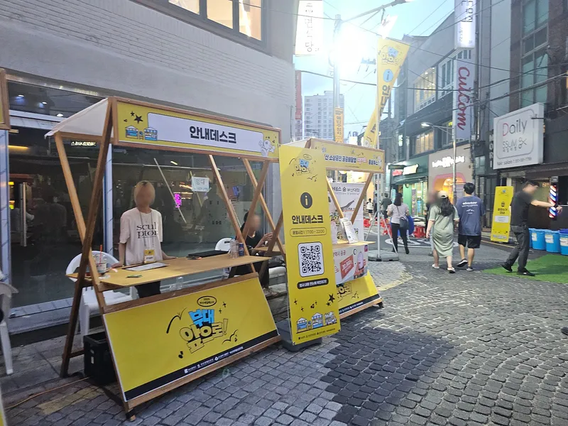 맥주와 안주를 먹는 길거리 포차로 진행되었지만, 분리수거가 잘 진행되고 있어서 행사 일원의 거리도 쾌적해서 즐거움의 배가 되었답니다. 안내데스크에서는 행사에 대한 안내 등을 도와주셔서 넓은 부산대학교 앞 일원이지만 쉽게 찾아가고 행사를 즐길 수 있었답니다.