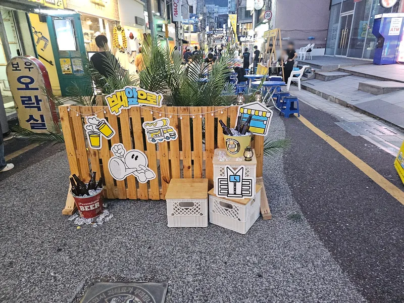 퇴근 후 시원한 맥주와 안주는 하루의 스트레스를 날려버리는 것 같고, 그때 그 시절의 대학가 분위기가 조성되어 설렘과 감성까지 살아나는 시간이었답니다.