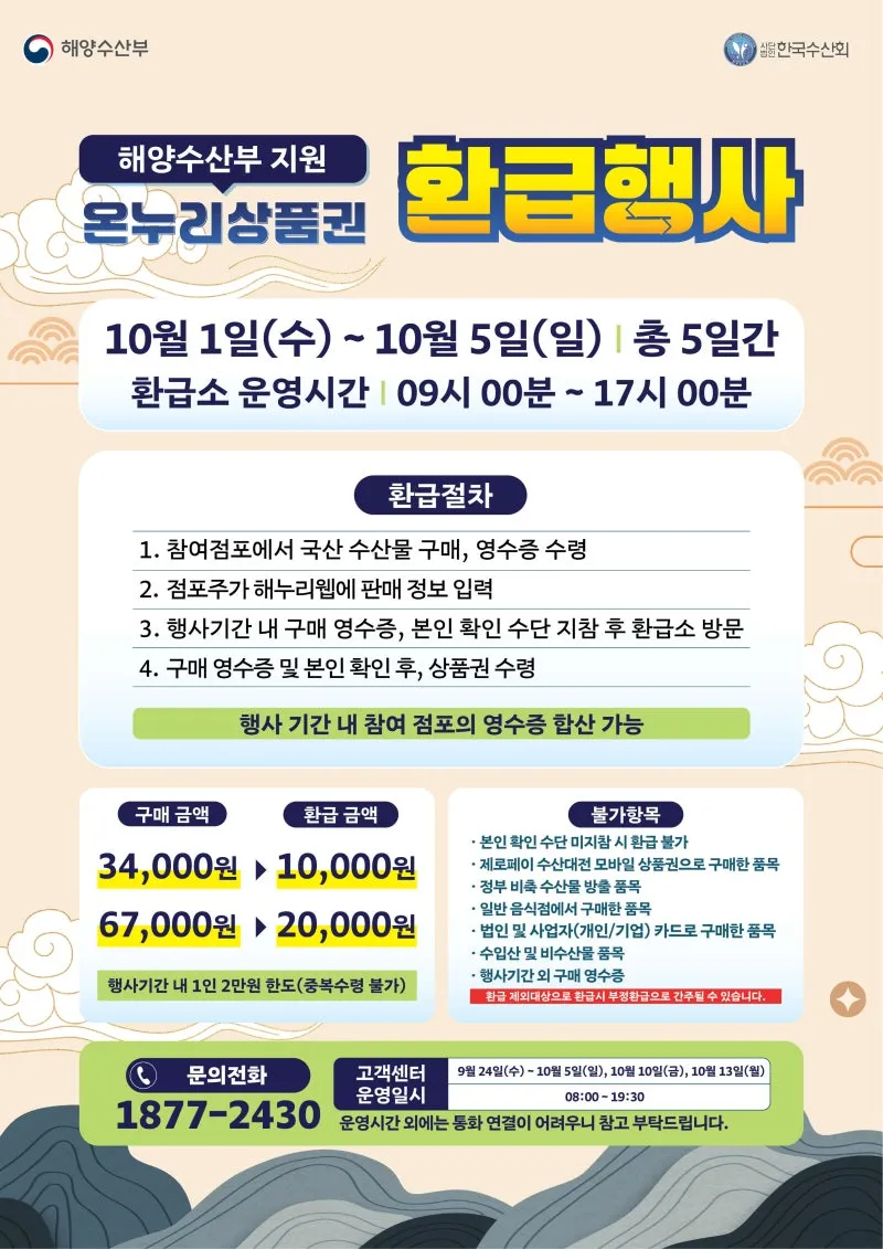 🐠 3만4천원 이상 ~ 6만7천원 미만 구매 시 → 1만원 환급