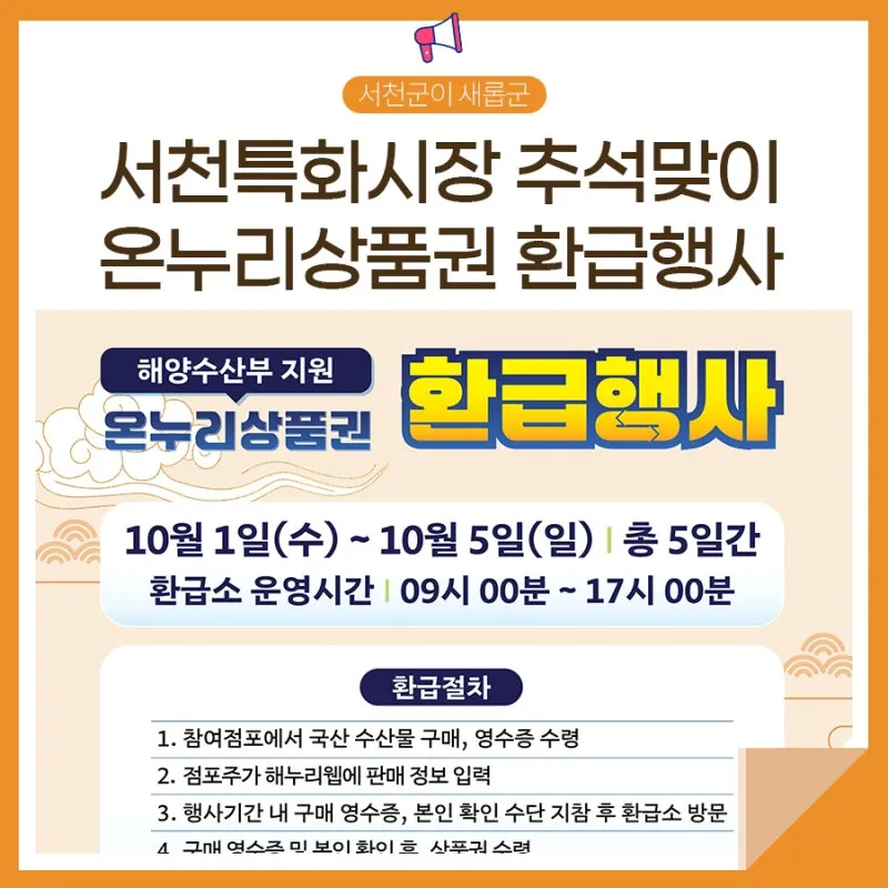 🎉 서천특화시장, 추석맞이 온누리상품권 환급행사 개최