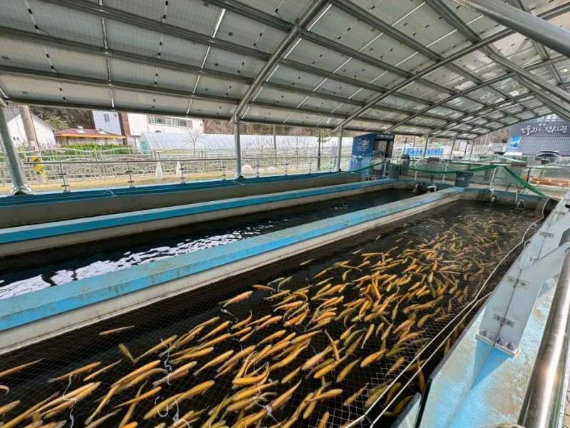 민물고기전시관은 멸종위기 2급인 열목어와 함께 대표적 냉수성 어종인 산천어와 무지개송어, 철갑상어를 외부에 전시하고 있으며 실내에는 83여 종의 다양한 관상어종을 무료로 볼 수 있는 곳입니다.