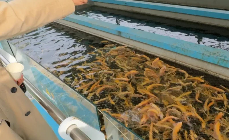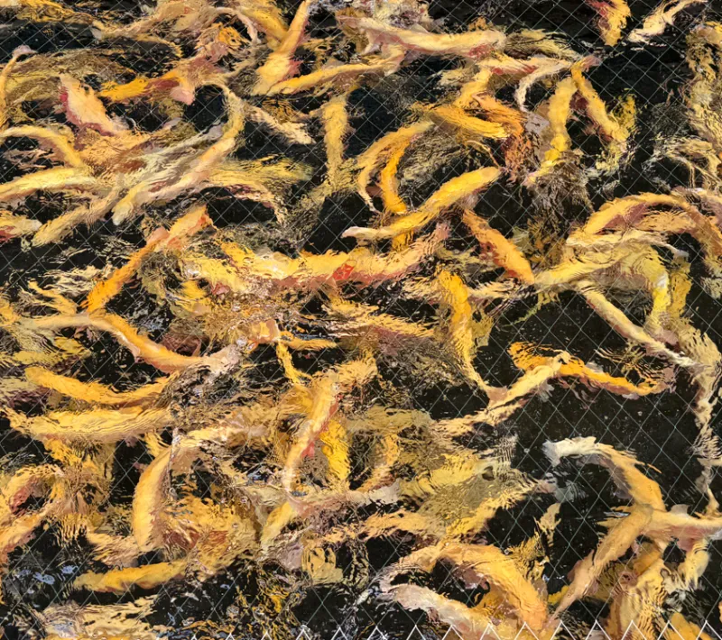 먹이를 던지면 유유히 헤엄치던 물고기들이 먹이를 쟁탈하기 위해 분주하게 움직입니다.