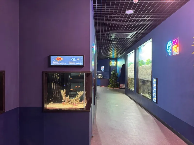제1전시관은 복도를 따라 걸어가며 다양한 관상어종을 구경할 수 있습니다.