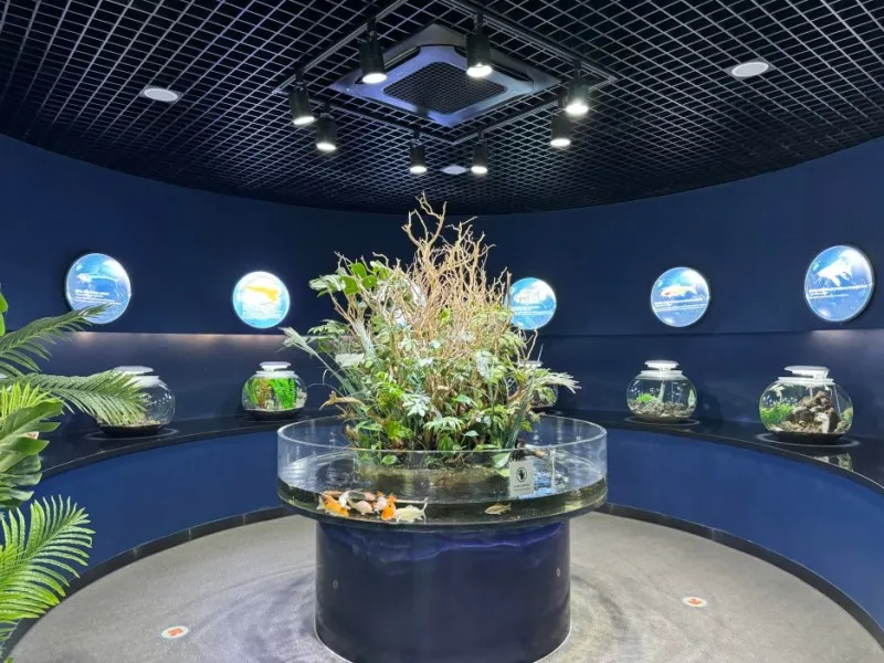 안쪽 원형 공간에는 소형 어항들이 놓여 있습니다.