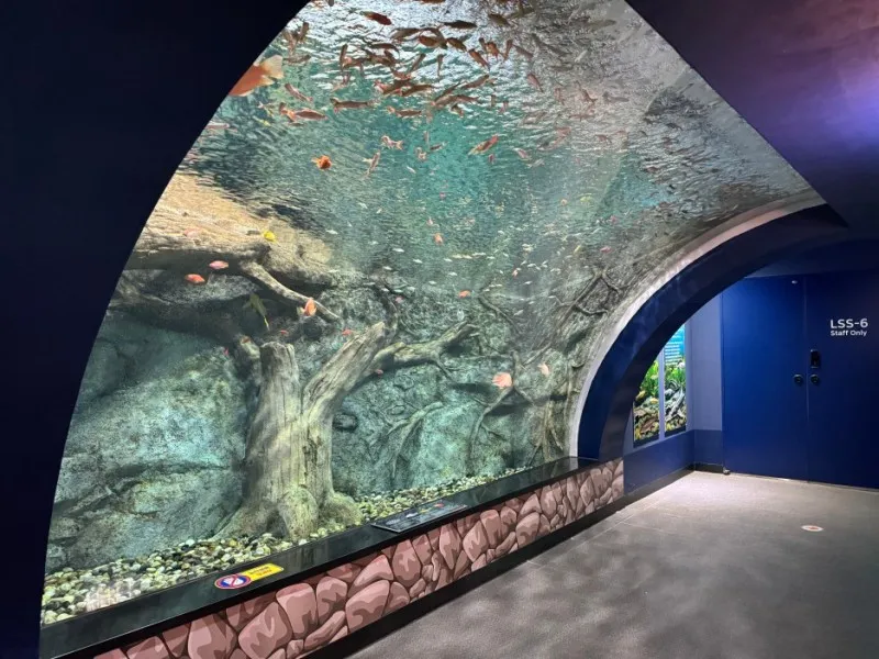 주황색 물고기가 가득한 반터널 수조까지 있습니다.