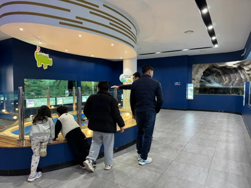 악어는 움직임이 없어서 모형인 줄 알았는데 눈을 껌뻑이는 모습을 보고 살아 있구나 싶었어요.