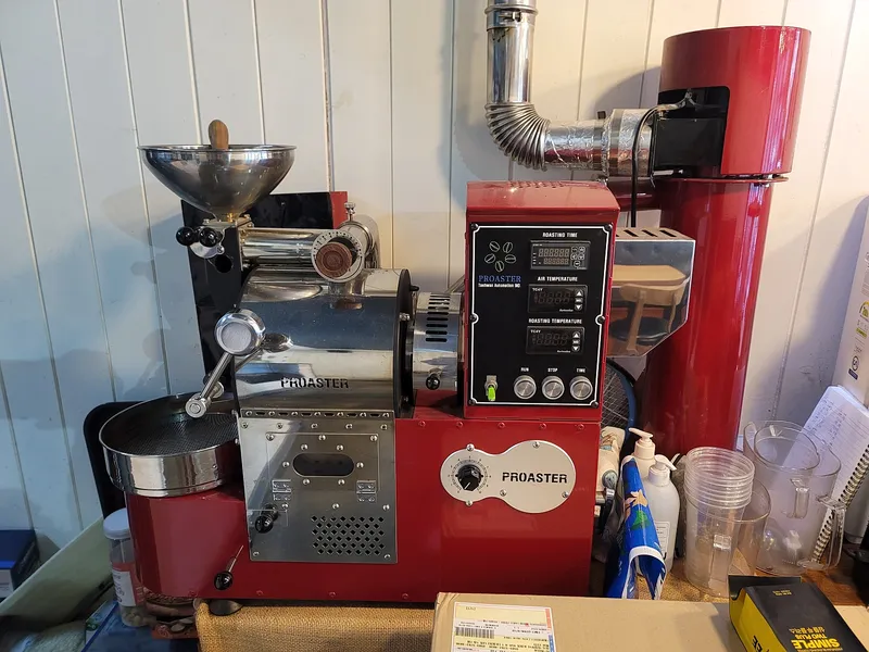 원두커피 로스팅 기계입니다. 항상 볼 때마다 느끼는 거지만 인터리어 효과로도 참 분위기 있어 보입니다.