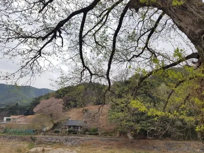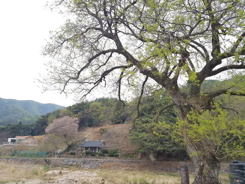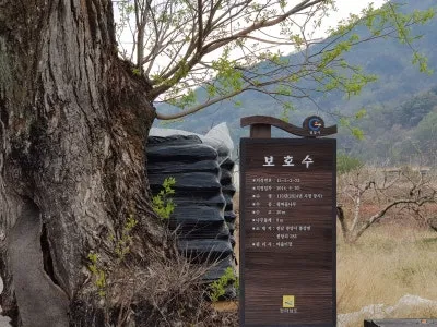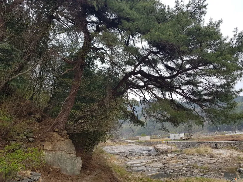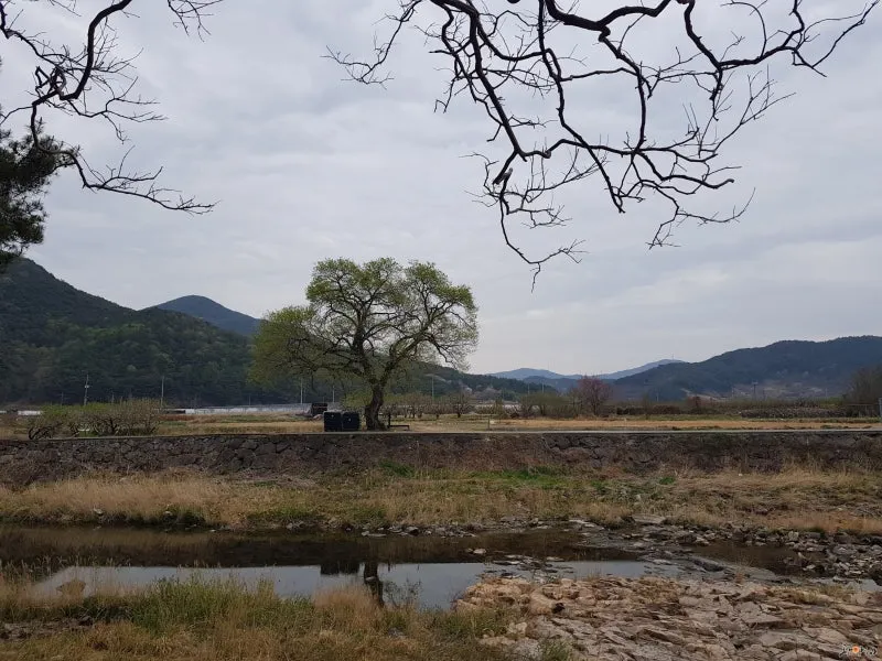 작은 계곡 옆 거대한 보호수 왕버들나무가
