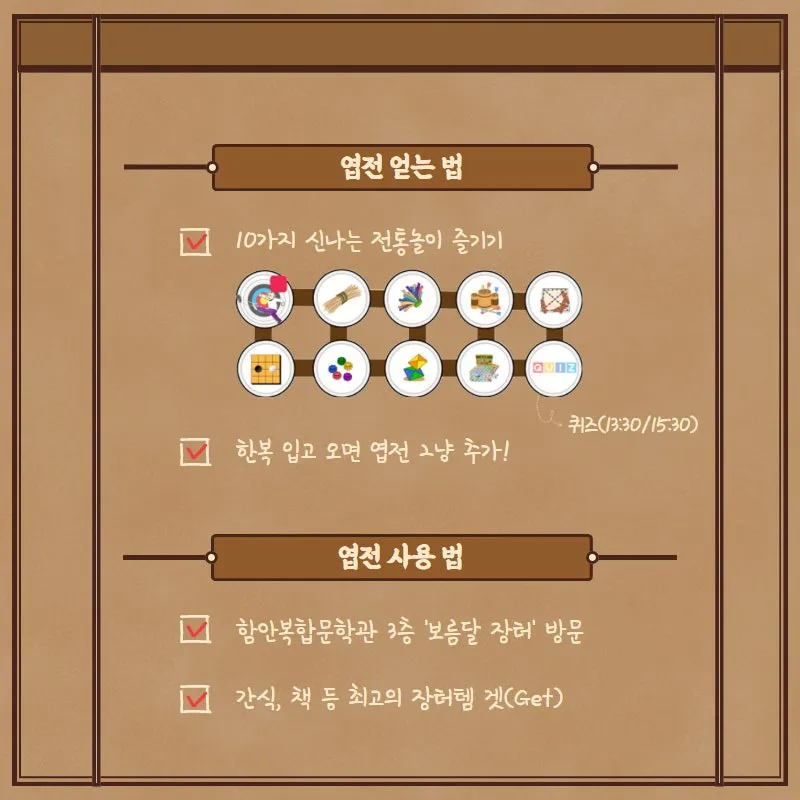 놀면서 엽전 받고, 다양한 장터 아이템까지 GET!