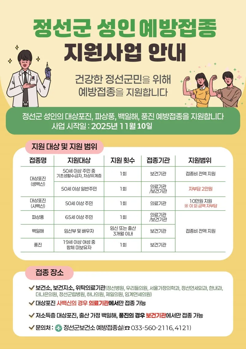 2025년 11월 10일부터 ‘성인 예방접종 지원사업’을 시행합니다.