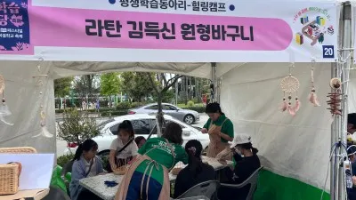 도서관 주변에는 마을학교와 평생학습 동아리에서 운영하는 다양한 부스들이 열려있었습니다.
