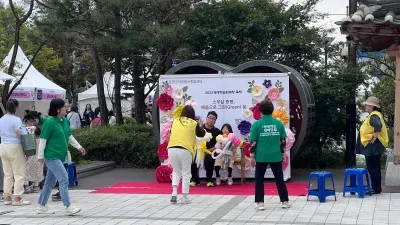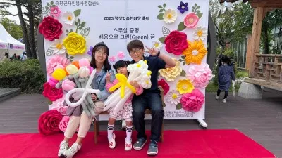 김득신 문학관 정문 오른편에는 풍선으로 만든 꽃을 들고 가족사진을 찍어주는 부스가 있었습니다.