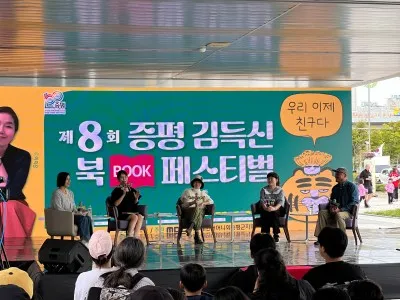 김득신 문학관 정문 앞 무대에서는 작가 이지은님과 다른 패널들이 진행하는 북 콘서트가 있었습니다.