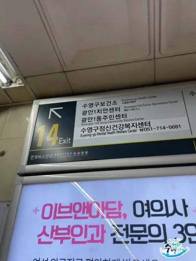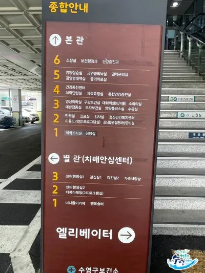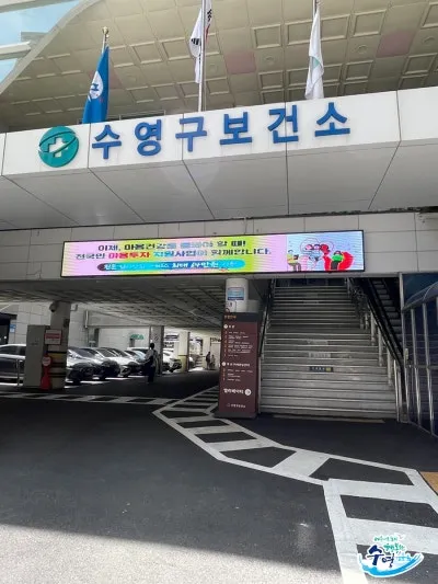 수영구보건소는 '부산 수영구 수영로 637-5 (광안동)'에 위치해 있으며, 부산 지하철 2호선 수영역 14번 출구에서 가까운 곳에 위치해 있습니다. 수영구 보건소 골목으로 들어가서 바로 옆 계단으로 올라가 수영구 보건소 2층 민원실에서 접수 후 검사를 받게 됩니다.