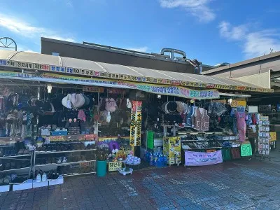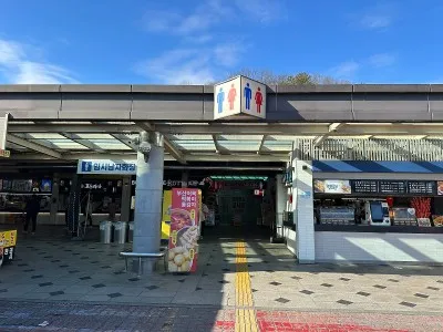 이제 본격적으로 정안알밤휴게소 내부 시설을 살펴볼까요? 먼저 입구에는 각종 패션 잡화를 판매하는 상점의 눈에 띄었습니다. 현재 화장실은 보수 공사 중으로 남, 여 화장실 모두 임시 화장실로 운영되고 있었습니다.