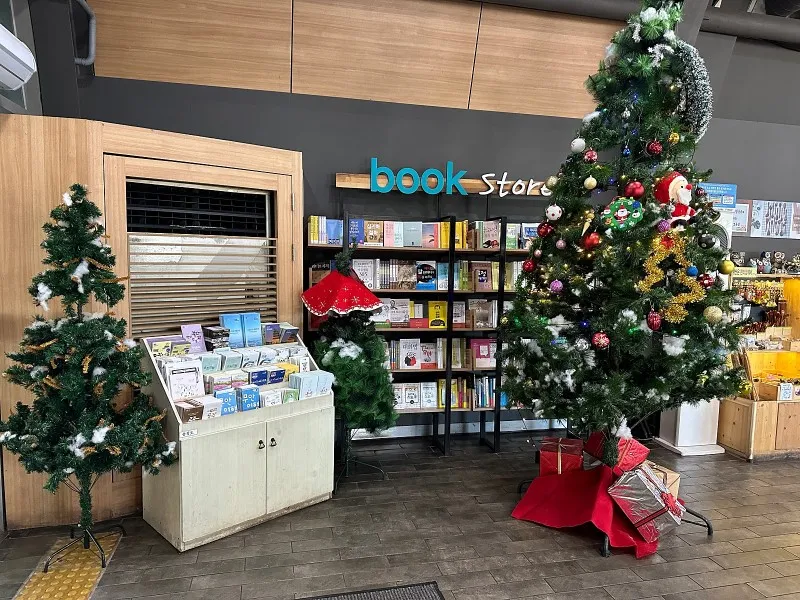 휴게소 내부에는 book store가 있었는데요. 이곳에서는 각종 도서 및 서적을 구매할 수 있습니다. 특히 대형 크리스마스 트리와 미니 크리스마스 트리가 있어 겨울 연말 분위기를 물씬 풍기고 있었습니다.