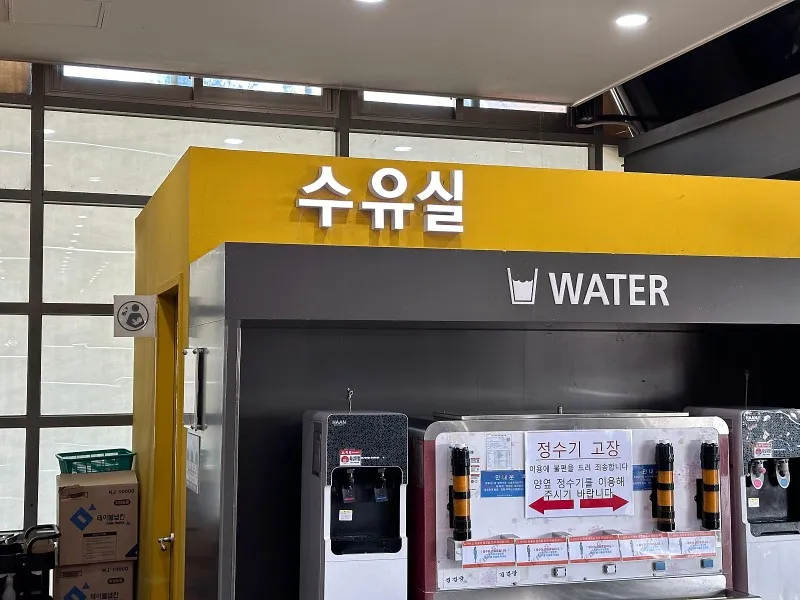 다양한 식품을 판매하는 편의점 키다리 슈퍼마켓과 푸드 코트로 식사부터 군것질까지 모두 가능했던 정안알밤휴게소. 식당 한쪽 구석에는 수유실이 준비되어 있었습니다.
