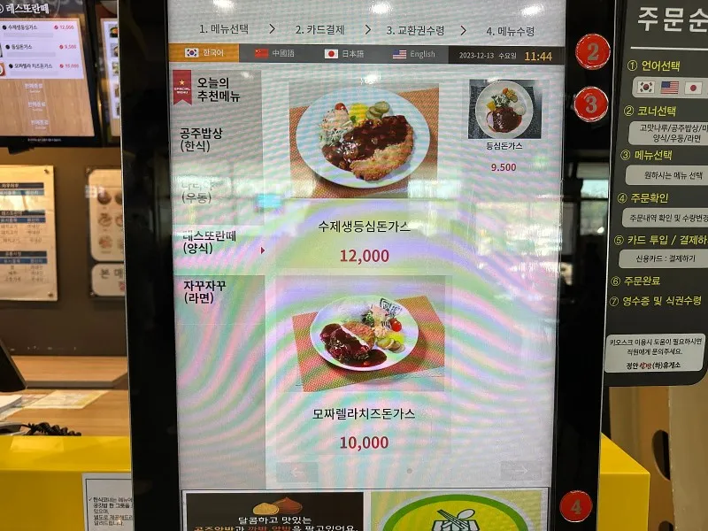 정안알밤휴세고 식당에는 공주밥상(한식), 다리야(우동), 레스또란떼(양식), 자꾸자꾸(라면)까지 다양한 종류의 식사가 가능합니다. 특히 공주에 인접한 휴게소이다 보니 정안왕갈비탕, 고맛나루김치찌개 같은 특별한 음식들이 눈에 띄었는데요. 종류가 다양하고 선택의 폭이 넓어 한 끼 식사하기에 충분합니다.