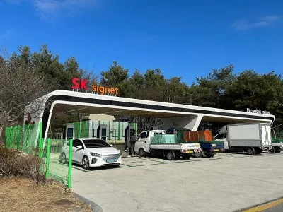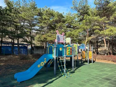 야외 한쪽에는 놀이터가 마련되어 아이들이 뛰어놀기 좋았고, 옆쪽에는 전기차 충전소도 있었습니다