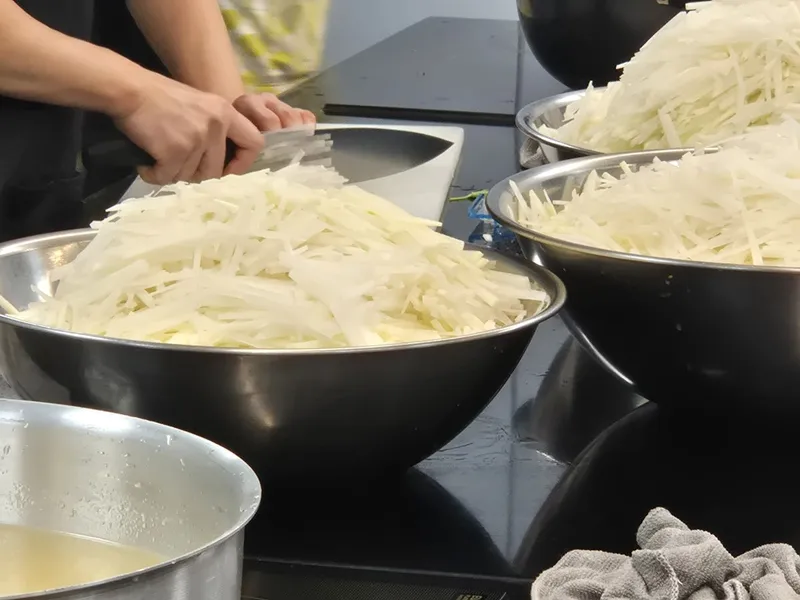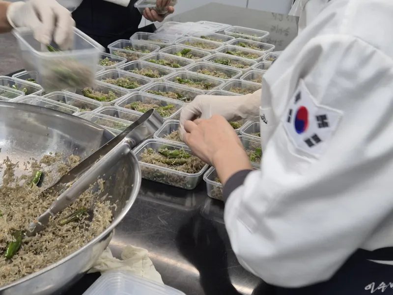 나물 역시 재료 손실에 많은 시간과 노력이 들어갔는데, 다듬고 양념하고 섞는 작업이 쉽지 않았지만, 모두 열심히 참여하는 모습이 정말 인상적이었습니다.