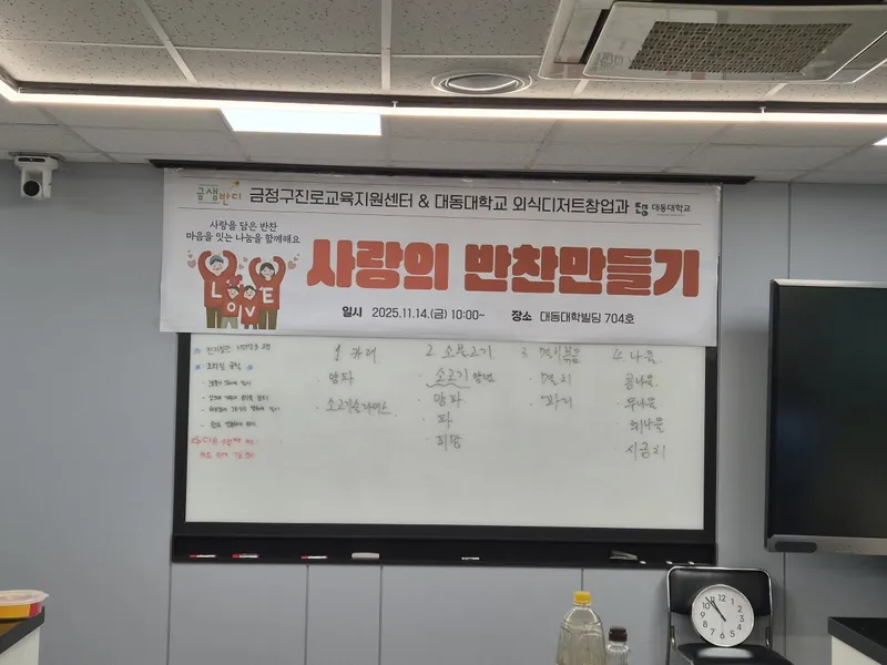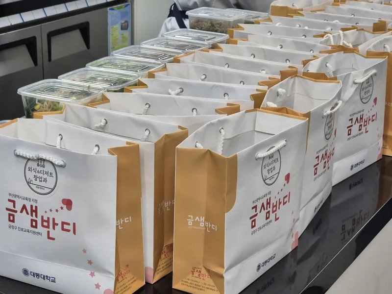 사랑의 반찬만들기는 금정구진로교육지원센터와 대동대학교 외식디저트창업학과에서 도움을 주셨습니다. 전문 교수님의 통해 반찬을 만들 수 있는 기회를 얻어 기뻤습니다.