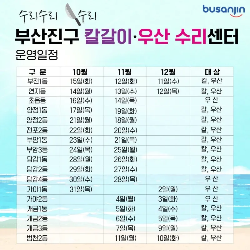 ✅ 1인당 칼2개, 우산 2개 까지 (무상수리)