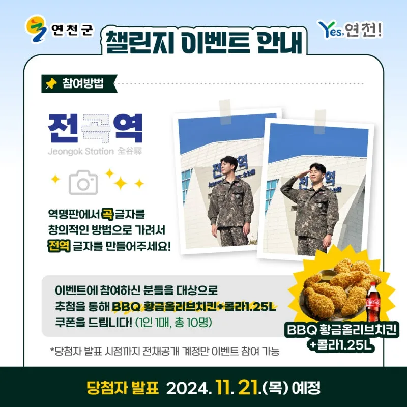 전(곡)역에서 전역 인증샷📸 찍으면 🍗치킨 쏜다!