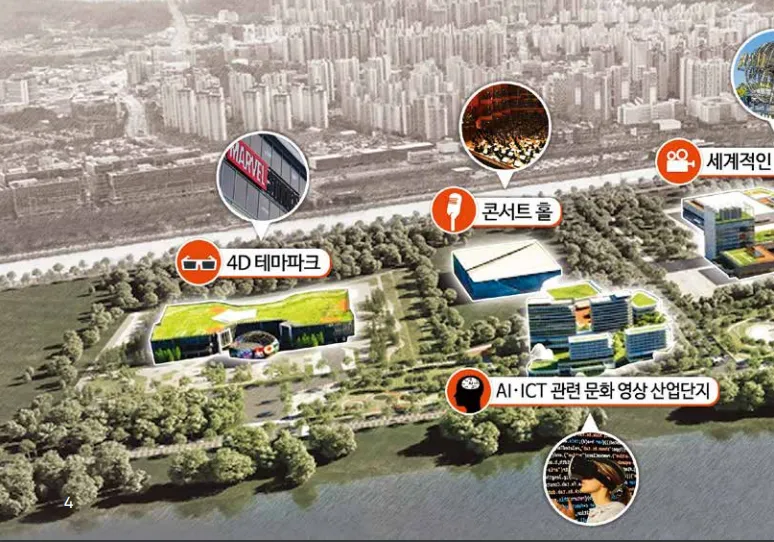 K-POP 전용 공연장, 세계적 영화 촬영스튜디오 등의 시설로 일자리 5만 개를 창조하고 10조 원의 경제유발 효과가 기대된다고 하남!