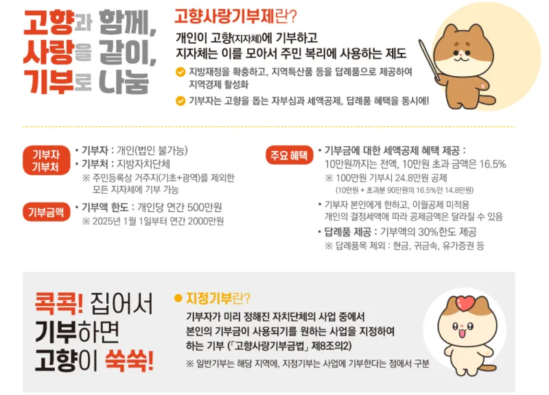 고향사랑 기부제의 주요 내용은 간단합니다.