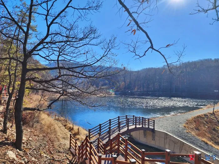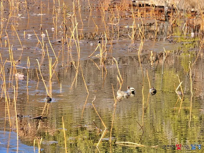 명상숲길을 따라 걷다 보니, 어느덧 마주친 마수지입니다. 겨울이라 그런지 조용하고 한적하고 좋았는데요. 마수지 주변 데크를 따라 거닐다 보니, 물 위에서 한가로이 여유를 즐기는 오리 가족도 만날 수 있었습니다.