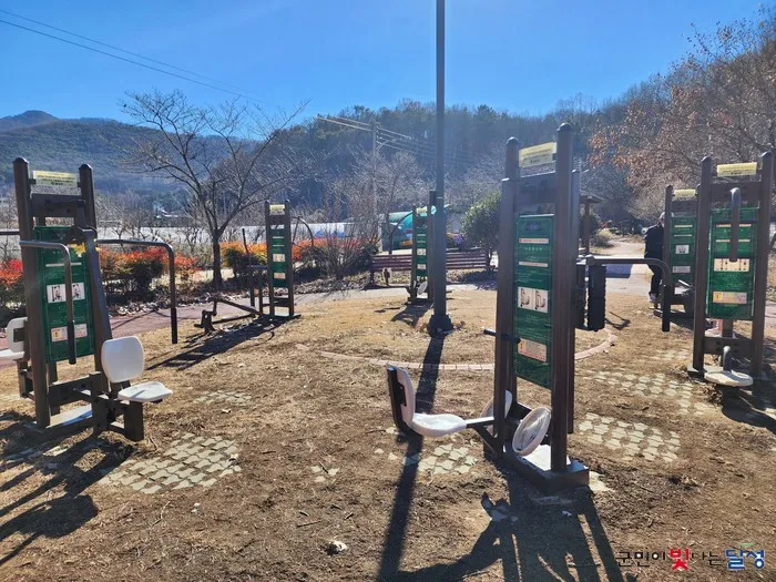 마수지 쉼터에는 앉아서 쉴 수 있는 벤치뿐만 아니라, 운동기구도 준비되어 있었는데요. 숲길을 걸으며 유산소운동을, 운동기구로 근육운동을 해주면 완벽한 운동코스가 만들어질 듯합니다.