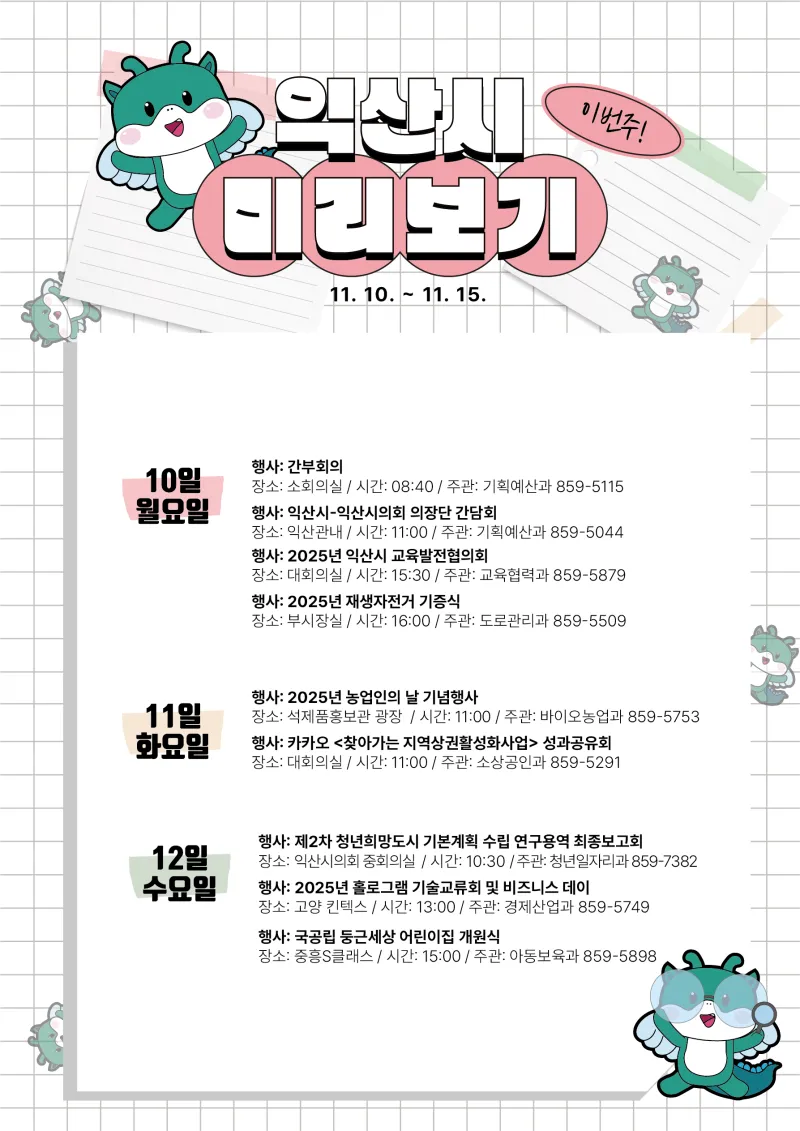 ???? 익산시 주간 주요 일정 (11.10. ~ 11. 15.) ????