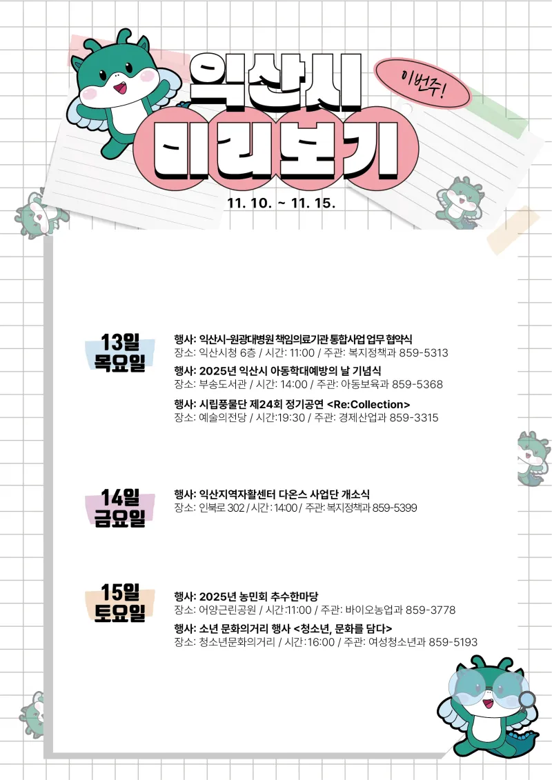 익산시 주간 주요 행사 11월 2주차 (2025. 11. 10. ~ 11. 15.)
