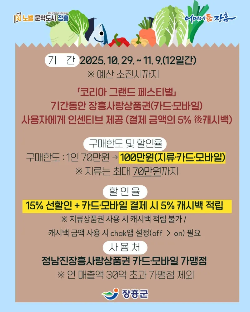 #코리아그랜드페스티벌 #장흥사랑상품권 #장흥할인 #지역경제살리기 #정남진장흥