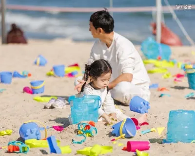해변에서는 연날리기와 보물찾기, 모래놀이까지🏖️