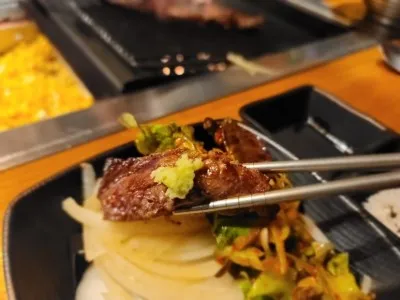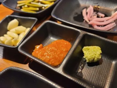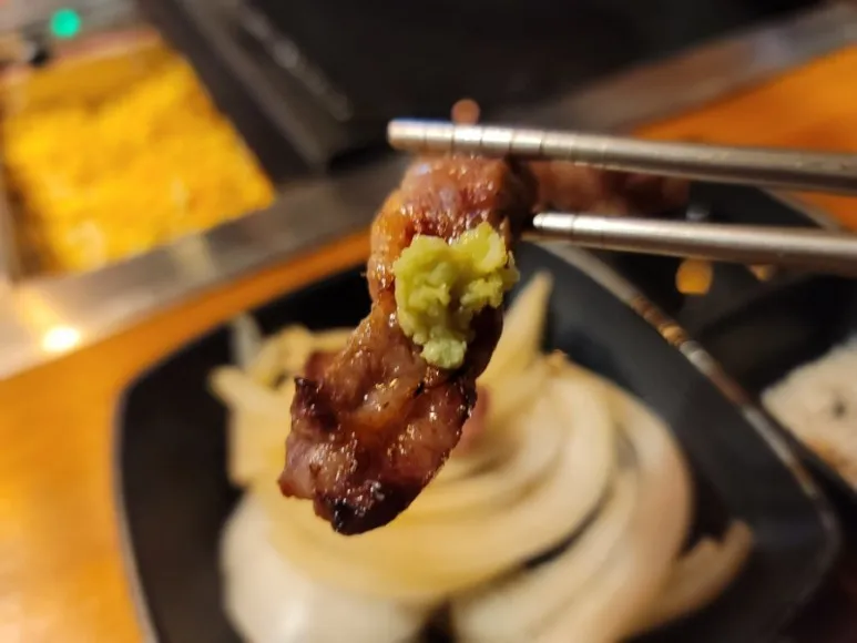 자고로 기름기가 많은 고기에는 와사비가 딱이죠.