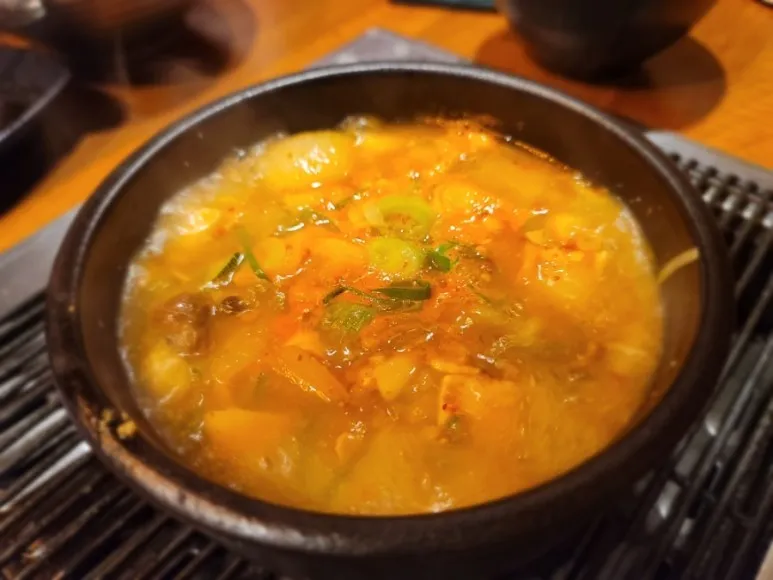 고기먹고 빠질수없는 된장찌개는 해물과 고기 두가지 버전으로 시킬 수 있는데 저희는 고기로 시켰습니다.