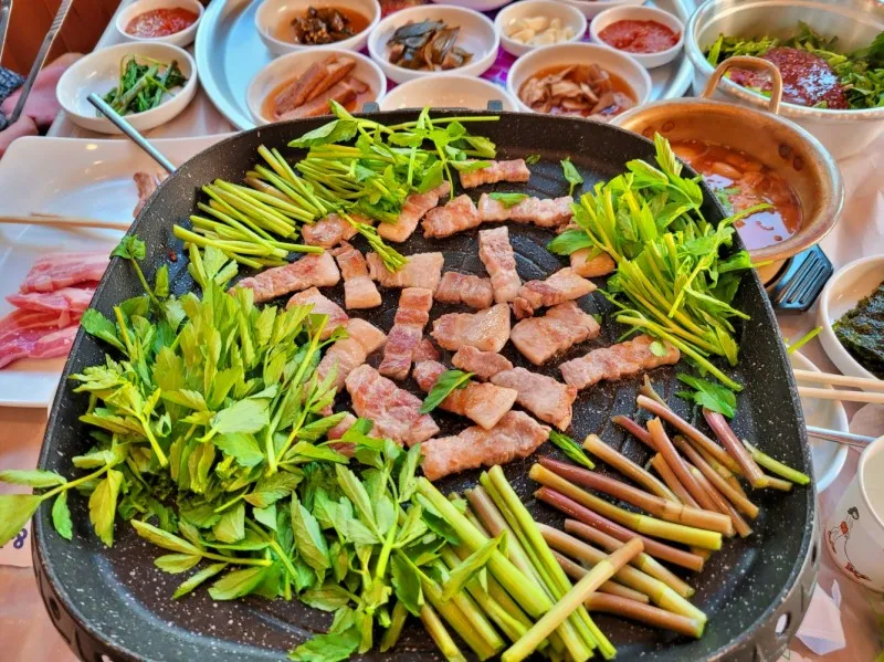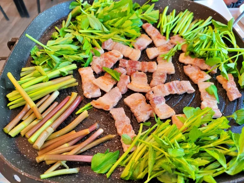 미나리 삼겹살 먹고