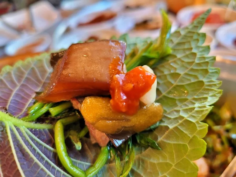 한입 먹으면 삼겹살의 고소한 맛이