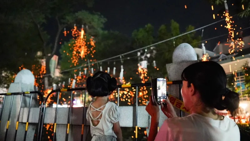 전통 방식의 불꽃놀이 퍼포먼스로, 한지(韓紙) 위에 불을 지펴