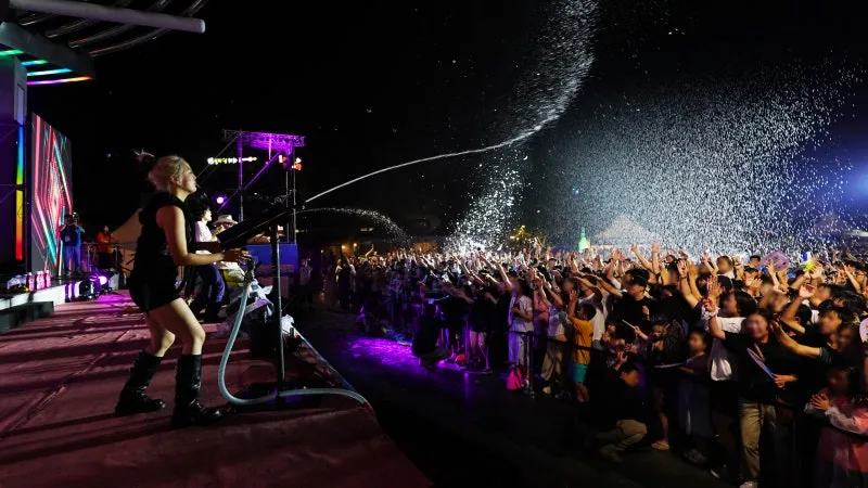 버블머신을 활용해 수많은 거품을 만들어내는 퍼포먼스가