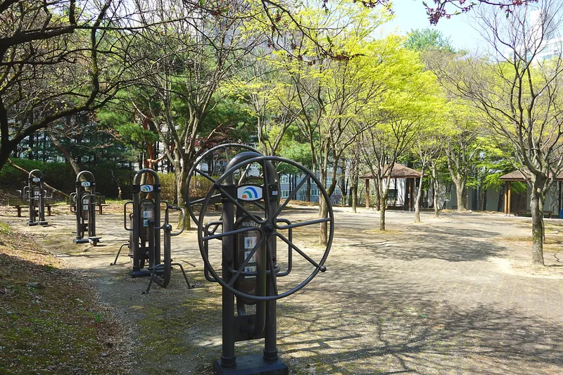 공원에는 운동 기구부터 벤치, 나무 그늘 등 운동시설부터 휴식 공간까지 다양합니다. 벤치에 잠시 앉아 일행과 대화를 나눴습니다.
